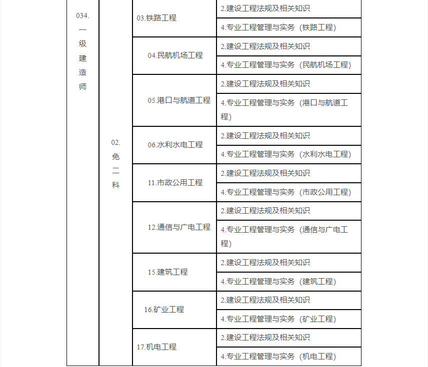 2.一級建造師資格考試專(zhuān)業(yè)對照表