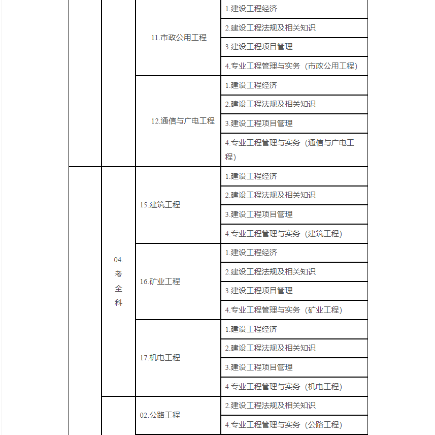 (一)一級建造師執業(yè)資格考試設《建設工程經(jīng)濟》(客觀(guān)題)、《建設工程法規及相關(guān)知識》(客觀(guān)題)、《建設工程項目管理》(客觀(guān)題)、《專(zhuān)業(yè)工程管理與實(shí)務(wù)》(主觀(guān)題)4個(gè)科目。